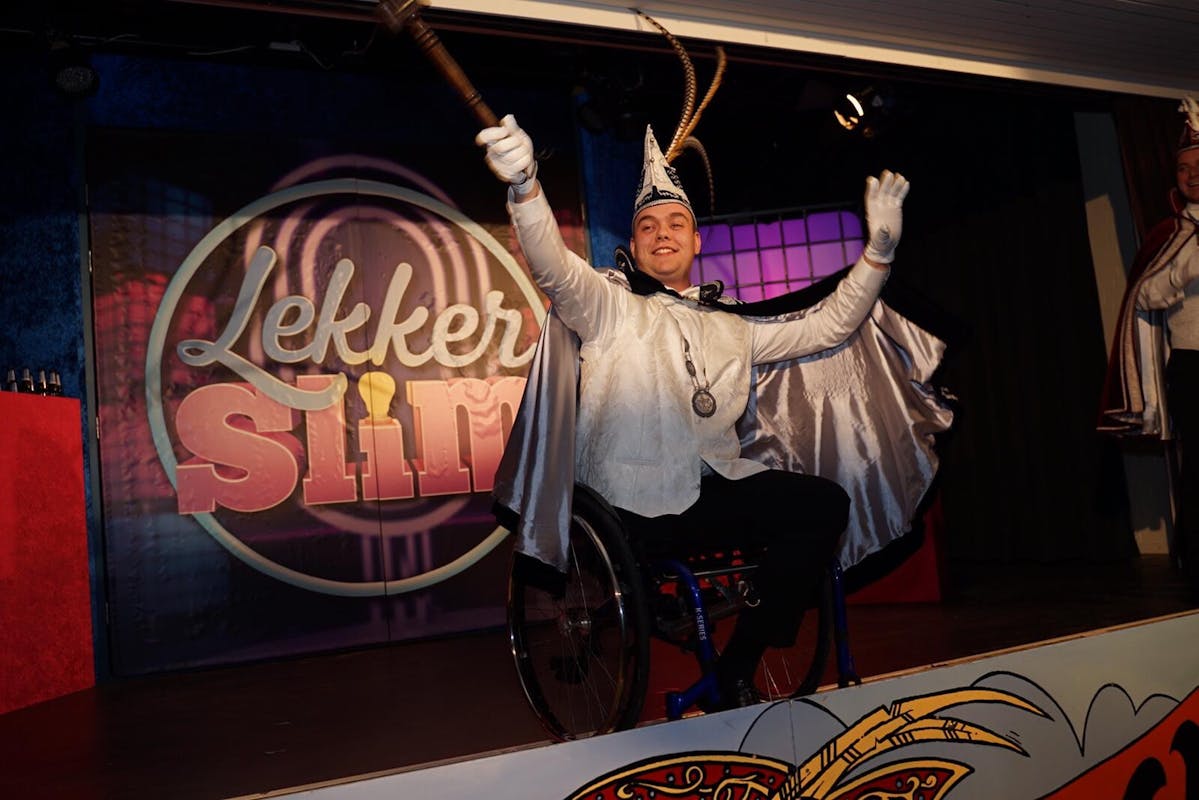 Mathijs werd als prins van Oeffelt hartelijk ontvangen. “Toen ik voor de dag kwam als prins van de Leemknèjers op het prinsenbal stond iedereen te schreeuwen. Ik dacht, ze zijn het er in ieder geval mee eens.” Aan zijn zijde staan adjudant Wessel en hofdame Debbie. Het eerste uittreden van prins Mathijs en zijn gevolg ging naar Utrecht, naar een bijeenkomst van ‘Gelijk is gelijk’. “Omdat ze gelezen hadden dat ik prins was ondanks mijn beperking, wilden ze dat we kwamen.”